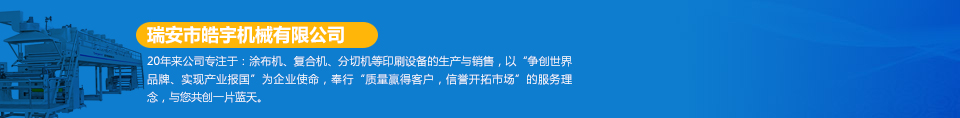 瑞安市皓宇機械有限公司是瑞安一家私營責(zé)任有限公司,注冊資金200萬,員工40余人,是具有獨立法人地位,專業(yè)生產(chǎn)定做各種非標(biāo)準(zhǔn) 涂布機 、 復(fù)合機 、 印刷機 、...[詳細]